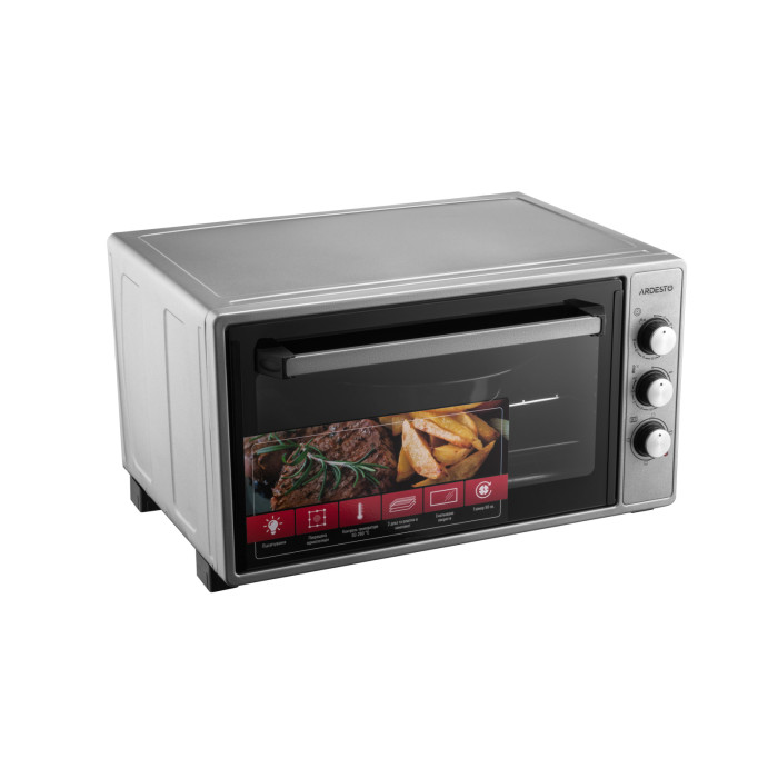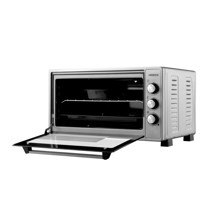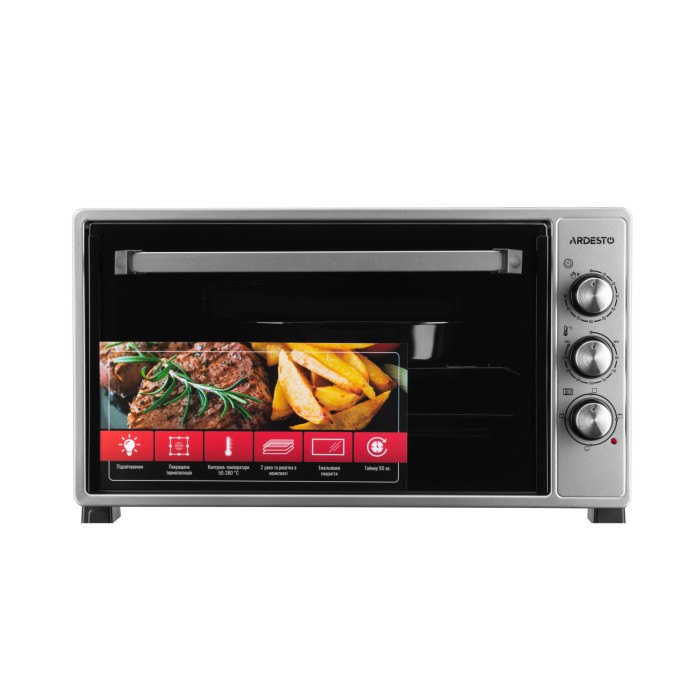 Электропечь ARDESTO MEO-N48GR имеет мощность 1700 Вт, что позволяет быстро нагревать устройство до нужной температуры. Объем внутренней камеры составляет 48 л, чего достаточно для приготовления разных порций еды