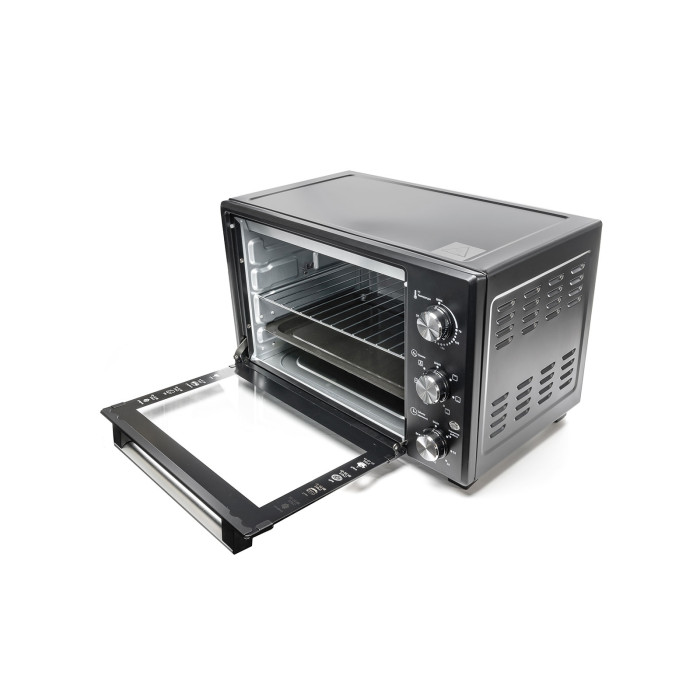 Пользоваться моделью HEO-142CR удобно и безопасно. Корпус печи выполнен из нержавеющей стали, а дверца оснащена термостойким стеклом. Внутренняя часть камеры и противня имеют антипригарное покрытие, что способствует простой очистке техники. Печь можно протирать влажной мочалкой или салфеткой для удаления пыли.