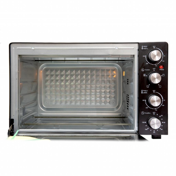 Внутренний объем настольного духового шкафа Rotex ROT350-B 35 л позволят печь торты, и другую выпечку любой сложности. Также эти параметры достаточны для запекания птицы целиком, даже в рамках подготовки к большим семейным праздникам. Различные режимы работы дают возможность выбирать между верхним и нижним нагревом либо использовать их комбинацию. Режим конвекции, который включается по желанию, гарантирует аппетитную золотистую корочку на любых видах блюд. Регулировка температуры от минимальных 70 и до максимальных 250 градусов дает возможность с одинаковой легкостью быстро запекать мясо либо сушить требовательные пастилу и безе. Таймер позволит задать необходимое время приготовления и подаст сигнал, когда процесс будет завершен.