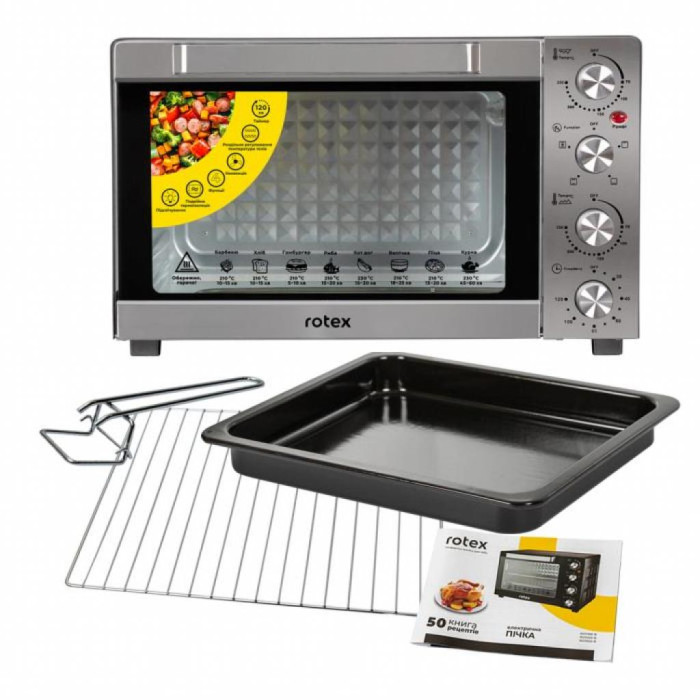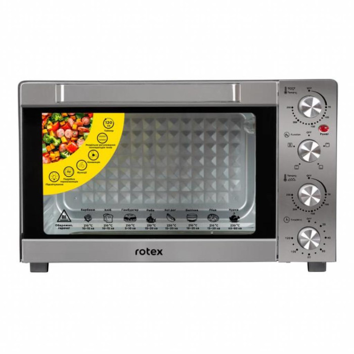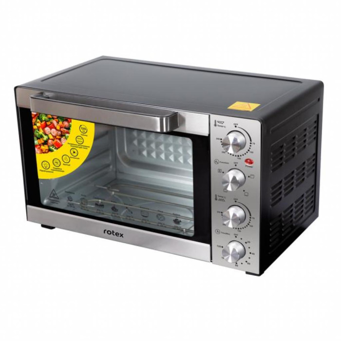 Электрическая печь ROTEX ROT452-CB выполнена в черном хроме хорошо сочетаемым практически с любым кухонным интерьером.