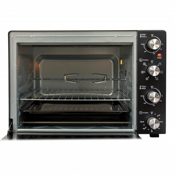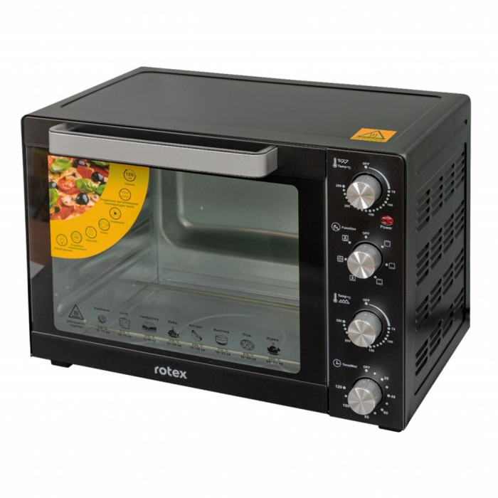 Внутренний объем настольного духового шкафа Rotex ROT650-B 60 л позволят печь торты, и другую выпечку любой сложности. Также эти параметры достаточны для запекания птицы целиком, даже в рамках подготовки к большим семейным праздникам. Различные режимы работы дают возможность выбирать между верхним и нижним нагревом либо использовать их комбинацию. Режим конвекции, который включается по желанию, гарантирует аппетитную золотистую корочку на любых видах блюд. Регулировка температуры от минимальных 70 и до максимальных 250 градусов дает возможность с одинаковой легкостью быстро запекать мясо либо сушить требовательные пастилу и безе. Таймер позволит задать необходимое время приготовления и подаст сигнал, когда процесс будет завершен.