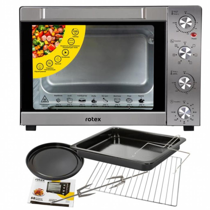 Электрическая печь ROTEX ROT652-CB выполнена в черном хроме хорошо сочетаемым практически с любым кухонным интерьером.
