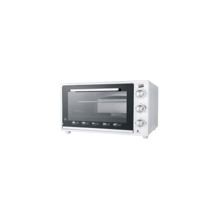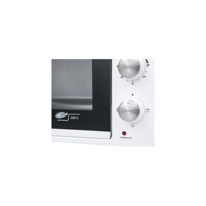 Недорогая и компактная электропечка KARINA в белом цвете выполняет все функции полновстраиваемого духового шкафа.