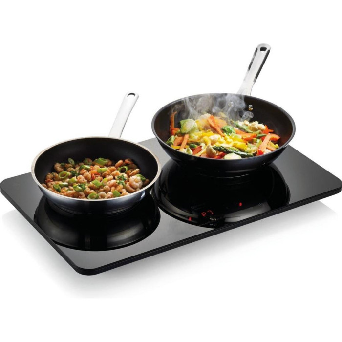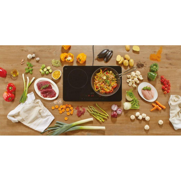 Настольная индукционная плита на 2 конфорки станет прекрасным решением для благоустройства загородного домика или дачи. Компактные размеры позволяют разместить оборудование на небольшой кухне.