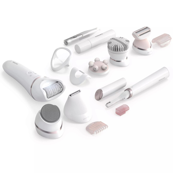 Гладкая кожа. Стопроцентная уверенность. Beauty Set 9000 – это комплексное решение для роскошной гладкой кожи от головы до пяток. Состоит из эпилятора и ручки-тримера. Благодаря разнообразным насадкам и аксессуарам подходит для отделки кожи, бровей, тела и ног.