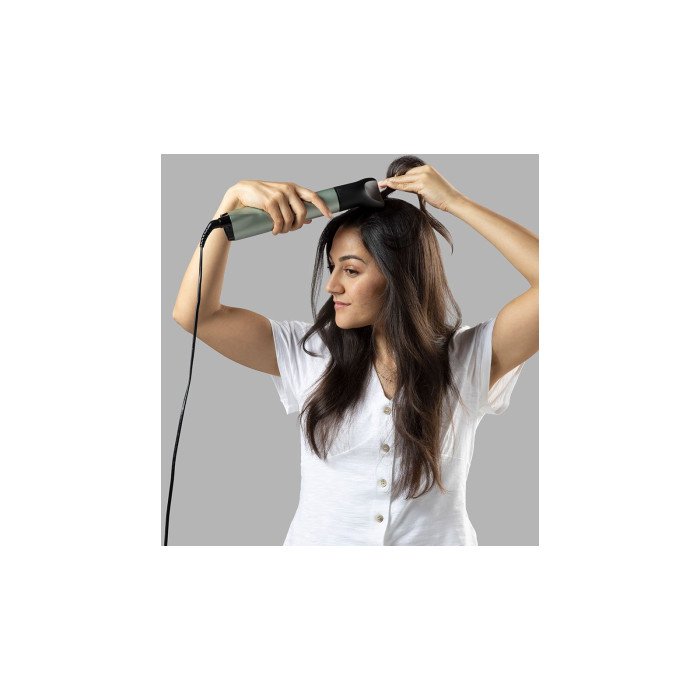 Remington AS5860 не только высушивает волосы, обладая мощностью 800 Вт, но и создает стиль, нужно лишь изменить температуру и насадку. Мгновенно изменяйте направление вращения с помощью простой кнопки. Стайлер вращается в обоих направлениях, поэтому можно создавать прически на обеих сторонах головы, не меняя насадок.