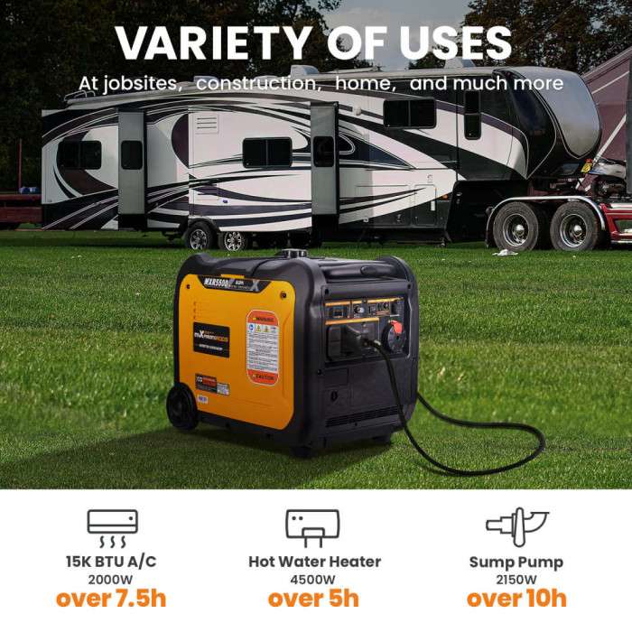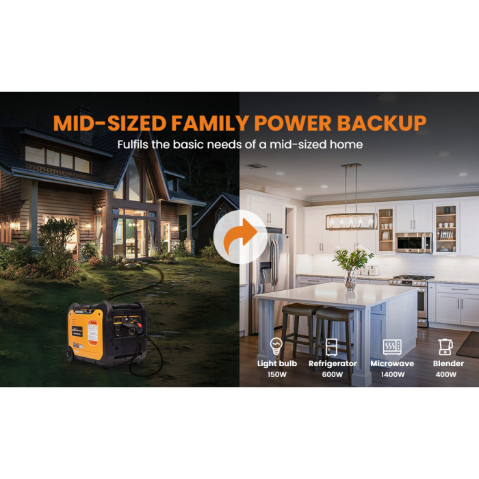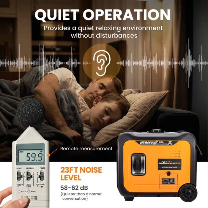 4. Тихая работа 62 дБ идеально подходит для домашнего аварийного питания, поездок RV и многого другого.