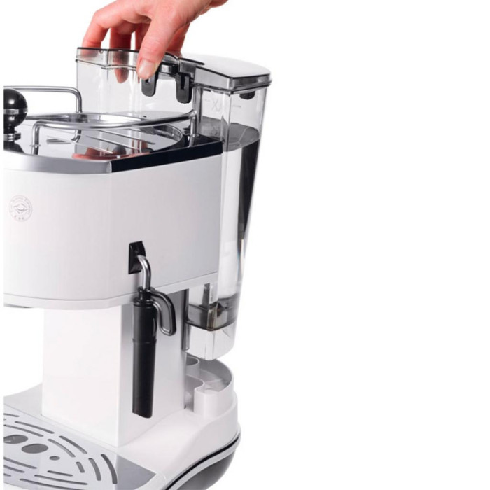 Кофеварка DeLonghi ECO 311 W - это белая рожковая кофеварка Espresso проста в обращении и уходе, имеет элегантный дизайн и блестящий корпус. Кофеварки коллекции Icona оснащены новым crema-фильтром 2в1, который можно использовать как с молотым кофе (1 или 2 чашки), так и с таблетованой (ESE). Система "Капучино" смешивает пар, воздух и молоко для нежного капучино с пышной пенкой.