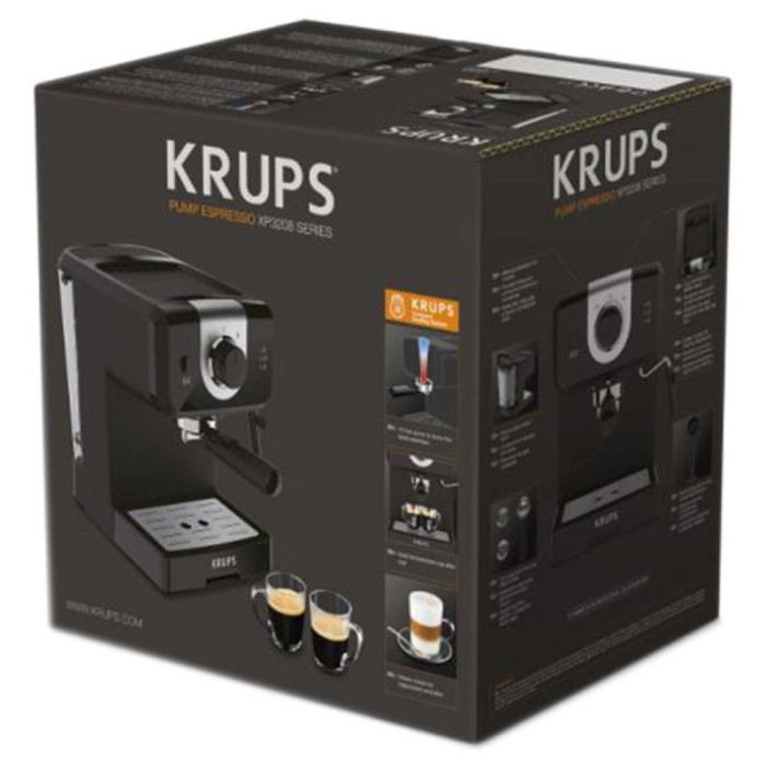 Простота использования кофеварки XP320830 С высокой мощностью 1000Вт вам не придется долго ждать, чтобы приготовить вкусный и ароматный кофе. Интенсивный вкус и насыщенный аромат кофе достигается за счет давления 1,5бар, создаваемое насосом внутри кофеварки. С кофеваркой Krups OPIO XP320830 в течение нескольких минут можно приготовить различные вкусные кофейные напитки с молочной пеной. Хороший объем емкости для воды 1,5л обеспечит достаточное количество воды для приготовления нескольких чашечек кофе подряд.