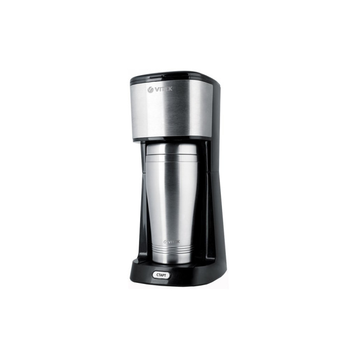 Компактная, стильная и надежная кофеварка VT-1510 станет прекрасным дополнением вашей кухни. При помощи этого простого прибора вы быстро сварите бодрящий напиток ранним утром. При этом вместо обычной чашки вы может воспользоваться термокружкой, которая прилагается в комплекте, и взять ароматный кофе с собой в дорогу или на работу. Данная модель универсальна! Ведь помимо молотого кофе, вы можете использовать кофе в чалдах или заварить прекрасный чай! Кофеварка отличается простотой в уходе. Лоток для сбора капель является съемным, поэтому его довольно легко вымыть по необходимости.