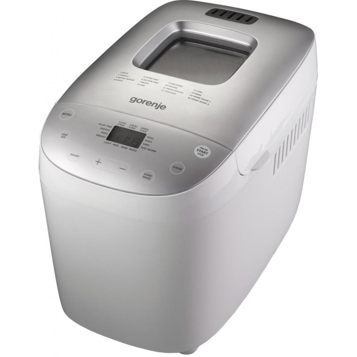 Хлебопечка Gorenje BM1600WG имеет 16 программ. Прибор может выпекать обычный хлеб, цельнозерновой хлеб, французскую выпечку с более хрустящей корочкой и пышным мякишем, хлеб без глютена, хлеб из муки грубого помола и делать сладкую выпечку. Также предусмотрены функции тесто, джем, йогурт, торт и тесто для макарон.