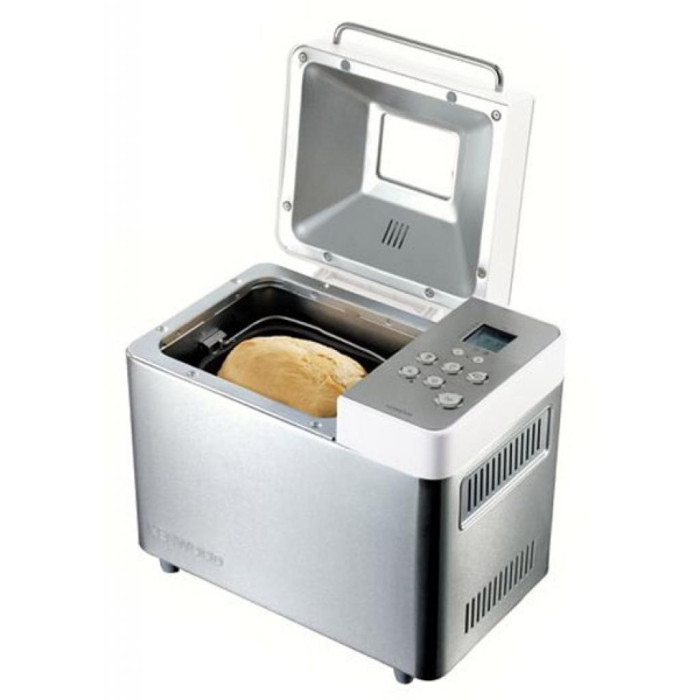 Дизайн хлебопечи очень прост и в то же время достаточно привлекателен. Для изготовления корпуса были использованы пластик и нержавеющий металл. Съемная крышка рассчитана на удобную загрузку необходимых продуктов.
