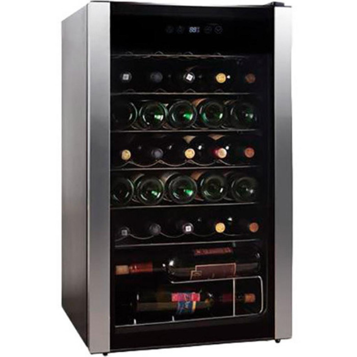 місткість 34 пляшки, скляні двері з УФ-фільтром, сигналізація відкритих дверей, внутрішнє освітлення