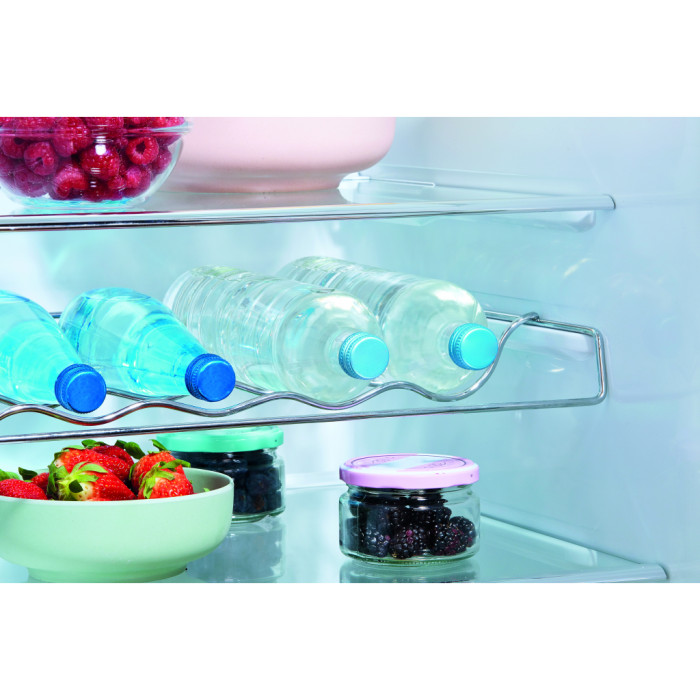 Удобное хранение бутылокНа удобной полке бутылки и банки с напитками всегда находятся под рукой и не занимают места на стеклянных и дверных полках, которое можно использовать для хранения других продуктов.