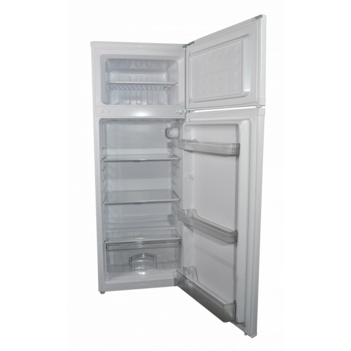 Холодильник Grunhelm GRW-143DD состоит из двух камер – холодильной и морозильной. При общем полезном объеме 209 л холодильный отсек занимает 169 л, а морозилка 40 л. Этого вполне достаточно, чтобы вместить в себя немало продуктов, а также сделать некоторые заготовки в замороженном варианте. Данный вариант имеет верхнее расположение морозильного отсека.