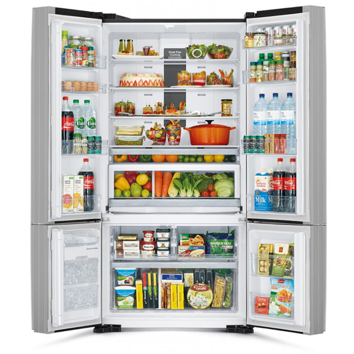 позволит компактно и эффективно расположить большое количество продуктов с соблюдением требований к товарному соседству, т.к. данная модель оснащена стеклянными регулируемыми полочками, ящиками для овощей, отделением с регулируемой влажностью, отделением с выбираемым режимом, дверными корзинами и полкой для бутылок. Равномерное охлаждение не даст продуктам испортиться, а наличие фильтра Nano Titanium позволит избежать появления неприятного запаха в холодильнике, а также образования бактерий и плесени. Объем данной модели – 582 литров. Объем морозильной камеры – 426 литров, а холодильной – 156 литра.