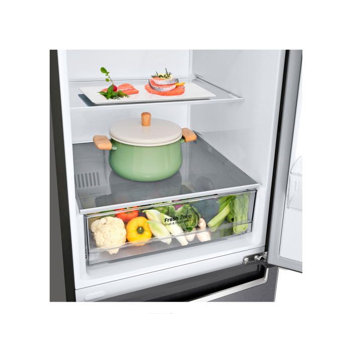 GC-B459SLCL – холодильник с морозильным отделением, общим полезным объемом 341 л поможет хранить большое количество продуктов и блюд. Технология DoorCooling+. На 32% более быстрое и равномерное охлаждение в любом отсеке холодильника. Тихая и надежная работа, чтобы ничего не нарушало покоя дома