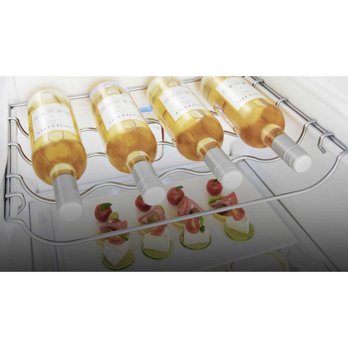 Удобная широкая винная полка для хранения до 4 бутылок при оптимальной температуре.