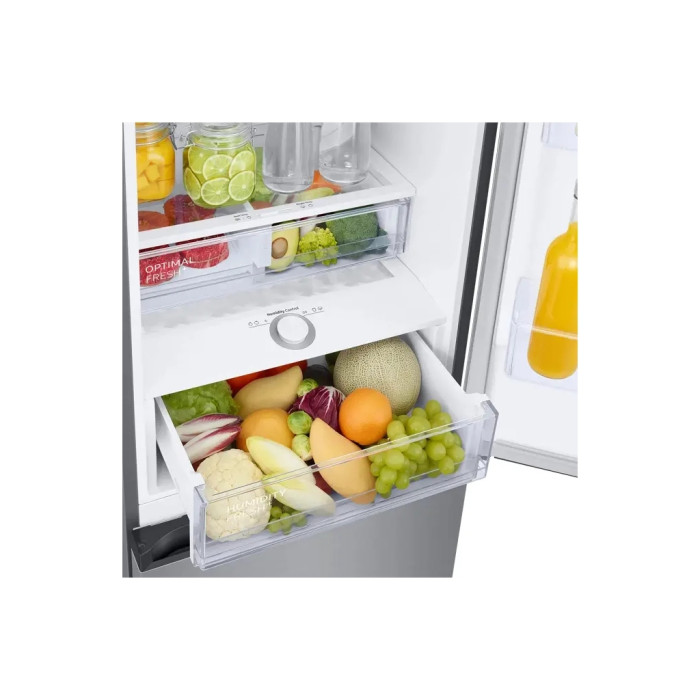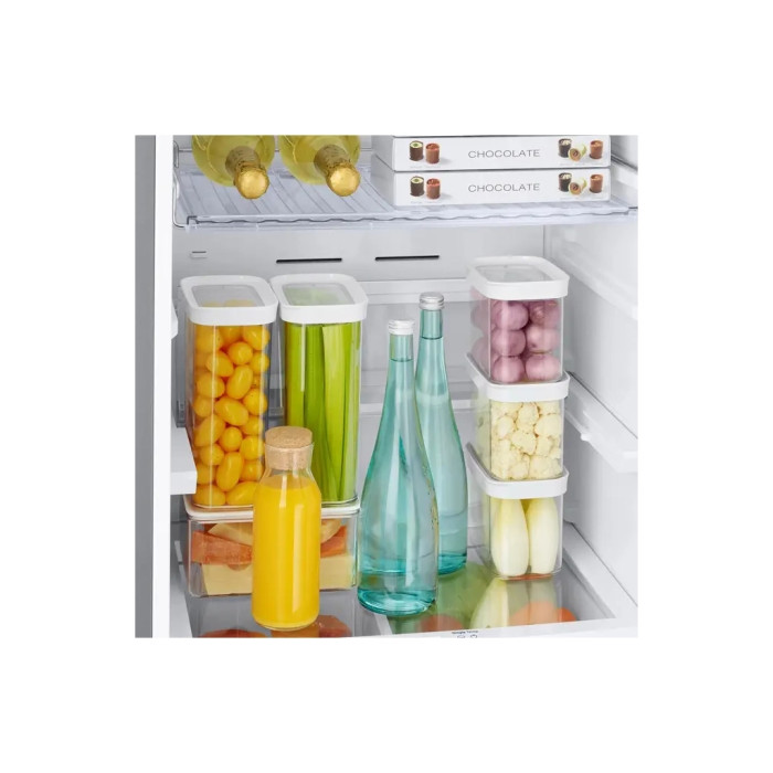 Холодильник с нижней морозильной камерой Samsung снижает температуру по технологии No Frost, поэтому выгодно отличается от моделей без такой системы. No Frost обеспечивает вентилируемое охлаждение, благодаря которому регулируется уровень влажности, отсутствует конденсат, иней, наледь, сторонние запахи и существенно продлевается срок службы холодильника.
