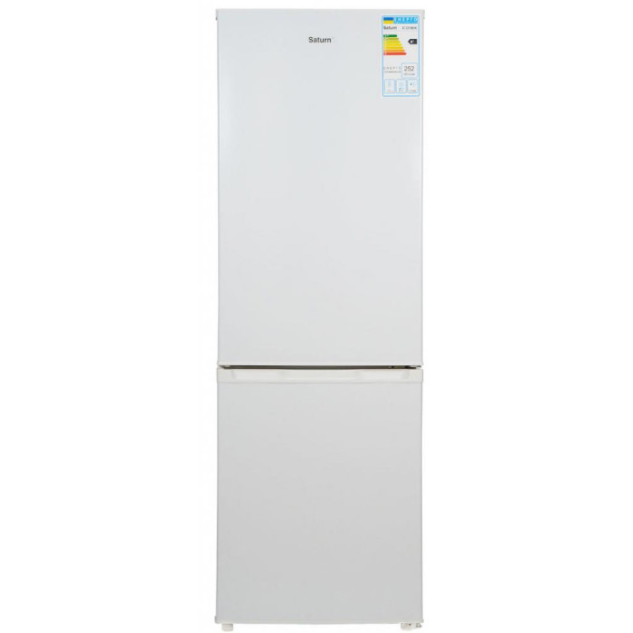 Двухкамерный холодильник Saturn с общим объемом 224 литра позволяет разместить все необходимые продукты в холодильной камере, эргономично используя пространство. Холодильный отдел вмещает в себя четыре прочные нескользящие стеклянные полочки и четыре подвески на дверях, ящики для овощей и фруктов. В морозильной камере предусмотрено три отсека.