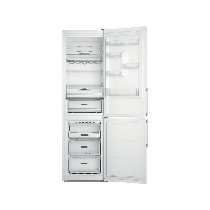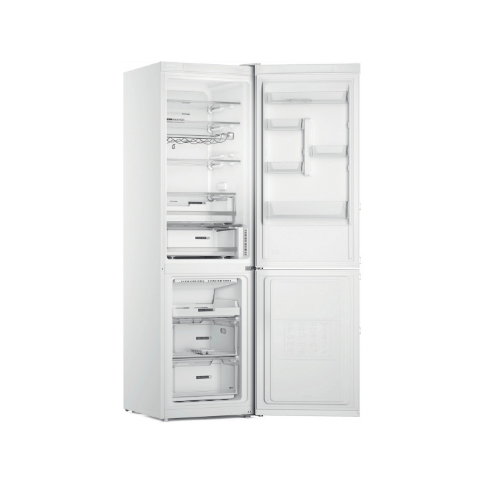 Отдельно стоящий холодильник с морозильной камерой Whirlpool. Дизайн Optic Inox с защитой от отпечатков пальцев. NoFrost, технология защиты от обледенения, которая эффективно предотвращает образование льда в морозильной камере благодаря снижению влажности. Высокий прибор, отвечающий потребностям семьи. Стеклянные полки, которые обеспечивают надежность и элегантность одновременно