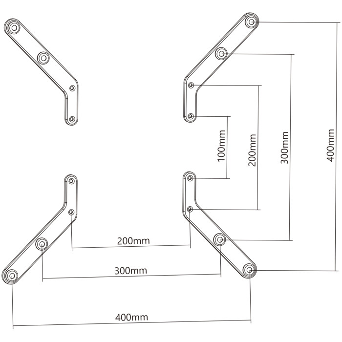 - Адаптер совместим с большинством моделей кронштейнов. Подходит к телевизорам с диагональю от 32" до 55". Превращает VESA 200х200 мм в VESA 300х300 мм, а также VESA 400х400 мм