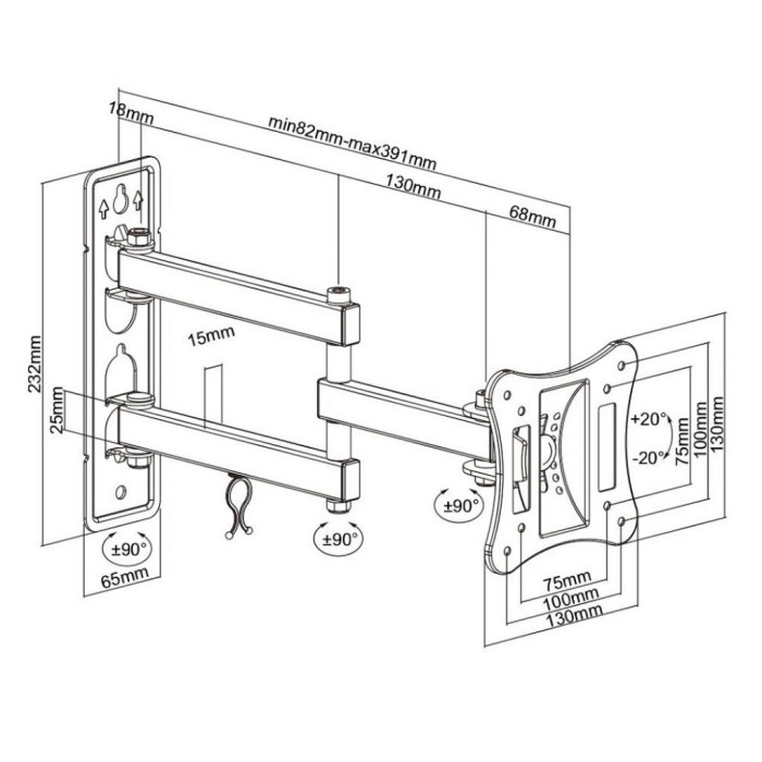 предназначена для установки любого 13 "-27" телевизора до 15кг. Простая конструкция позволяет легкую установку. Полное движение обеспечивает максимальную гибкость - расширить, наклона и поворота телевизора до 391 мм от стены в каждом направлении для удобного просмотра с любого места в комнате.