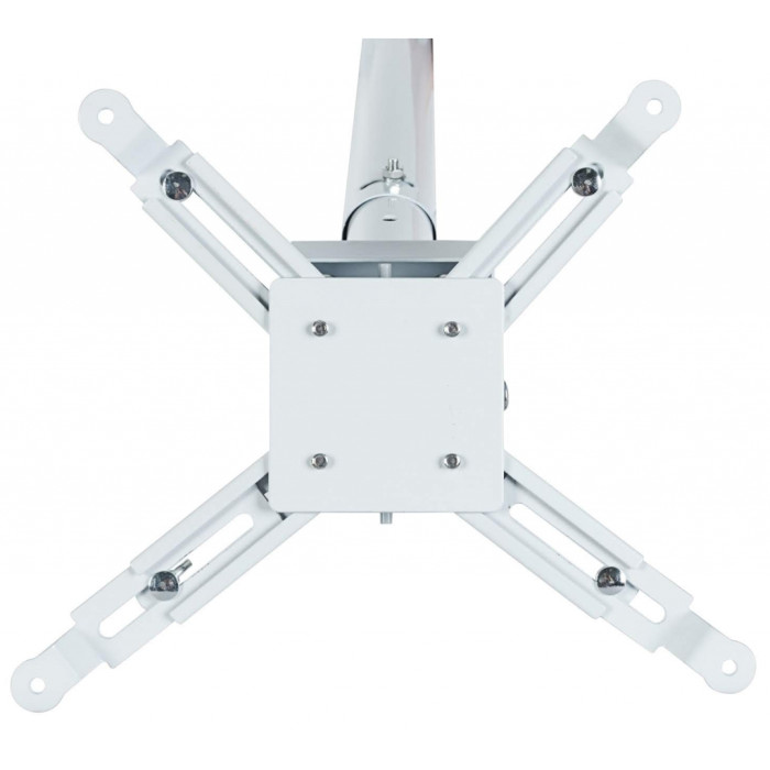 CHARMOUNT PRB55-100 white предназначен для проектора весом до 25 кг. Кронштейн крепится к потолку или к стене, дает возможность наклонить проектор от - 15 ° до + 15 ° и регулировать отступление от потолка / стены в пределах 550-1000 мм. Видстинь между адаптерами регулируется от 210 до 280 мм.
