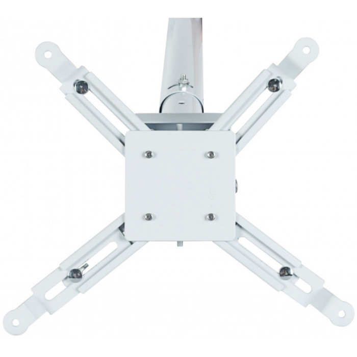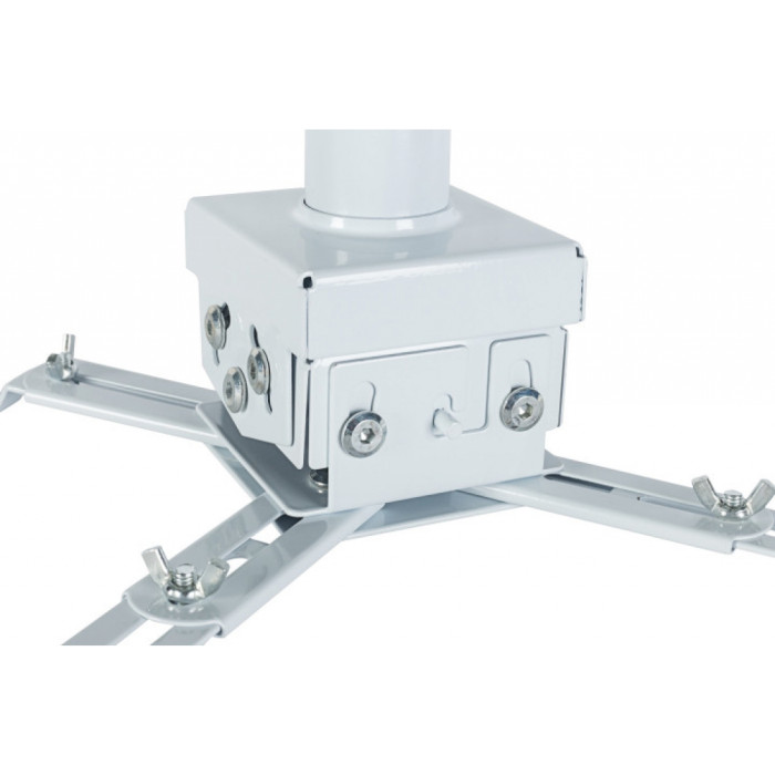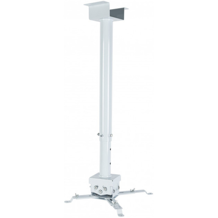 CHARMOUNT PRB55-150 white предназначен для проектора весом до 25 кг. Кронштейн крепится к потолку, дает возможность наклонить проектор от - 15 ° до + 15 ° и регулировать отступление от потолка в пределах 550-1500 мм. Видстинь между адаптерами регулируется от 210 до 280 мм.