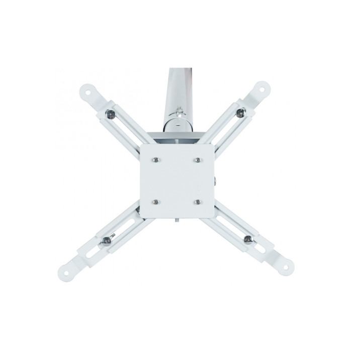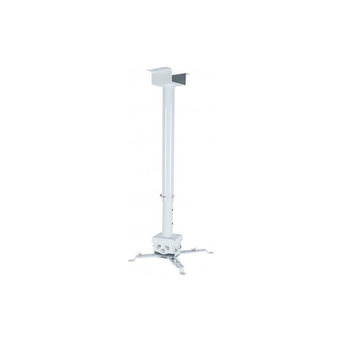 CHARMOUNT PRB55-200 white предназначен для проектора весом до 25 кг. Кронштейн крепится к потолку, дает возможность наклонить проектор от - 15 ° до + 15 ° и регулировать отступление от потолка в пределах 550-2000 мм. Видстинь между адаптерами регулируется от 210 до 280 мм.