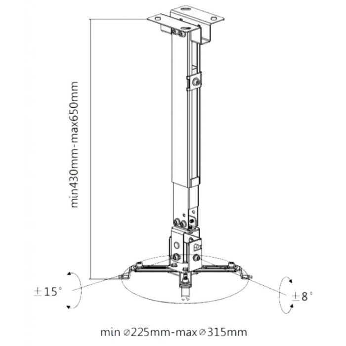 Потолочный кронштейн ITech для крепления видеопроектора. Имеет хорошую и простую монтажную регулировку, что обеспечивает лёгкий монтаж, и жёсткую фиксацию проектора на кронштейне.