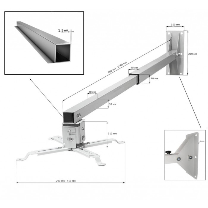 Кронштейн позволит надежно закрепить ваш проектор. Он разработан с учётом максимальной функциональности.