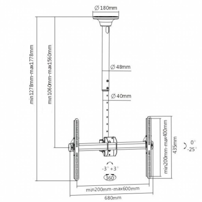 Кронштейн ITech Celb-54L - это надежный и удобный потолочный кронштейн, который идеально подойдет для телевизора с диагональю от 32" до 55", при этом выдержит нагрузку весом до 50 кг. Потрясающий дизайн и удобство констр... Читать далее...