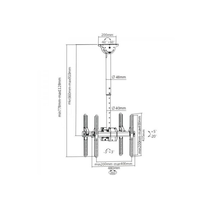 Кронштейн ITech Celb-Duo-54S - это надежный и удобный потолочный кронштейн, который подойдет для 2х телевизоров с диагональю от 37" до 70", при этом выдержит нагрузку весом до 90 кг. Потрясающий дизайн и удобство констру... Читать далее...