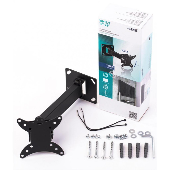Кронштейн KSL WM112T - настенное крепление для ЖК-телевизоров малого и среднего размера. Алюминиевые детали KSL WM112T со стильной, гладкой поверхностью гарантируют устойчивость. С помощью настенного кронштейна KSL WM112T можно расположить на стене ЖК, плазменную и ультратонкую LED панель с диагональю от 13 до 28 дюймов.