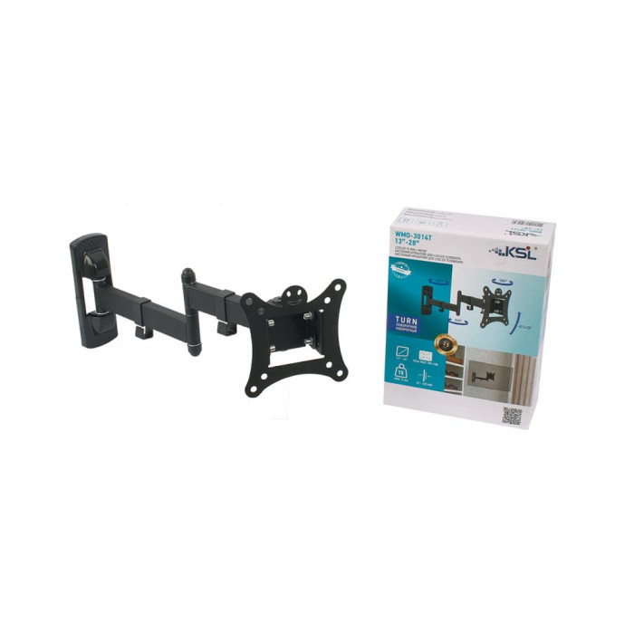 Поворотный кронштейн WMO-3014T подходит для плазменных, LCD, LED телевизоров и мониторов с диагональю 13-28 дюйма и весом до 15 кг. Поддерживаемый стандарт VESA: от 75×75 мм до 100×100 мм