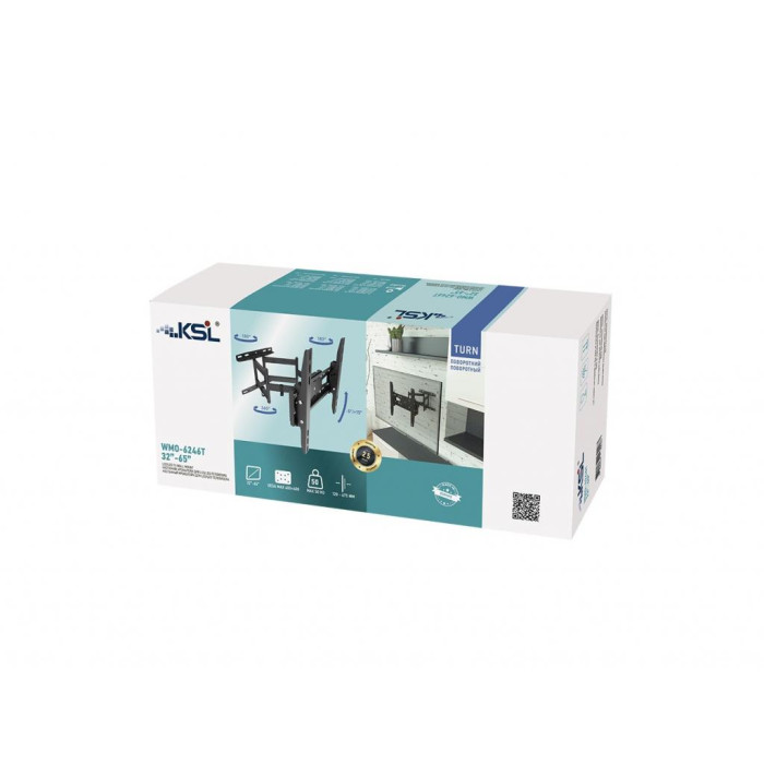 Поворотный кронштейн WMO-6246T подходит для плазменных, LCD, LED телевизоров и мониторов с диагональю 32-65 дюймов и весом до 50 кг. Поддерживаемый стандарт VESA: от 100×200 мм до 400×400 мм