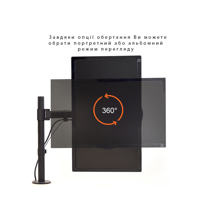 Угол поворота монитора на креплении можно отрегулировать в пределах от +180° до -180°.