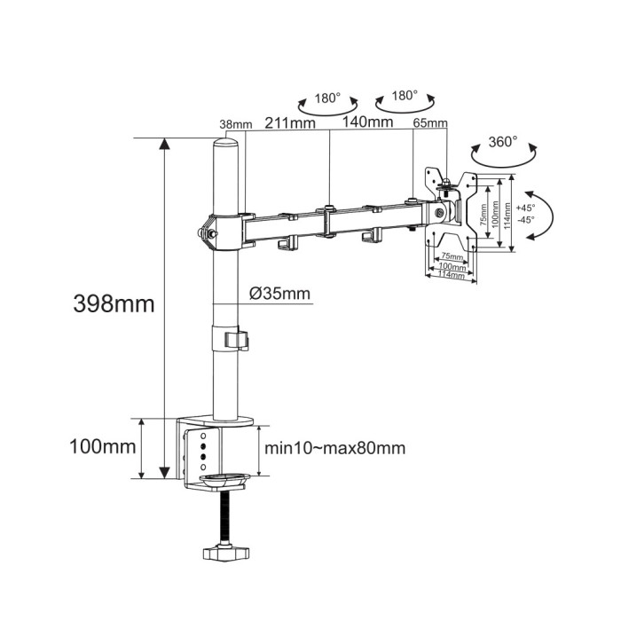 Данная модель предполагает плечо крепления с опцией регулировки длины до 454 мм