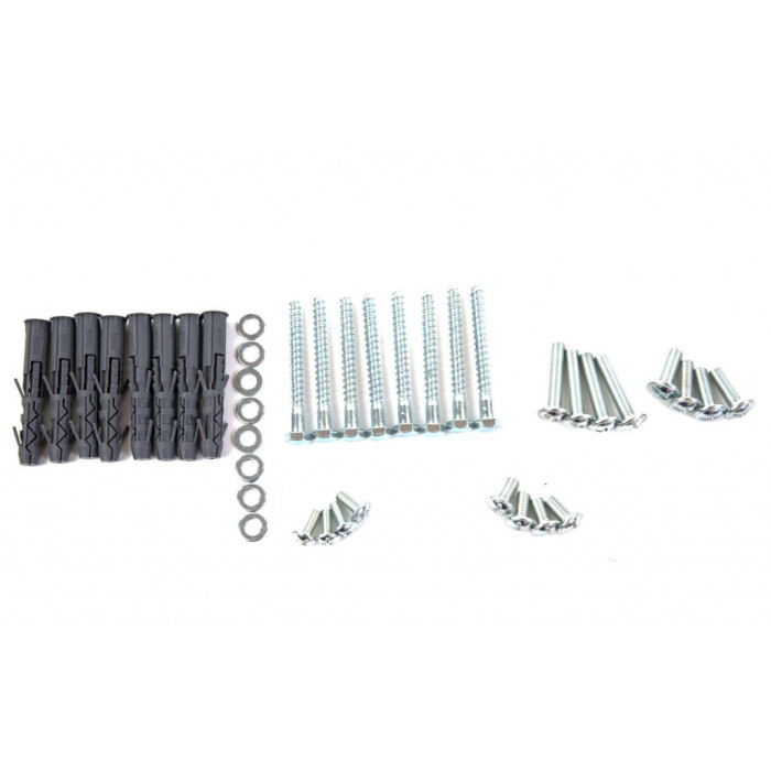 пластина, лапи (2 шт), інструкція, дюбель 12 x 80 (8 шт), шуруп M8 x 80 (8 шт), гвинт 8 x 40 (4 шт), гвинт 6 x 16 (4 шт), гвинт 8 x 16 (4 шт), гвинт 8 x 25 (4 шт), шайба M8 (12 шт)