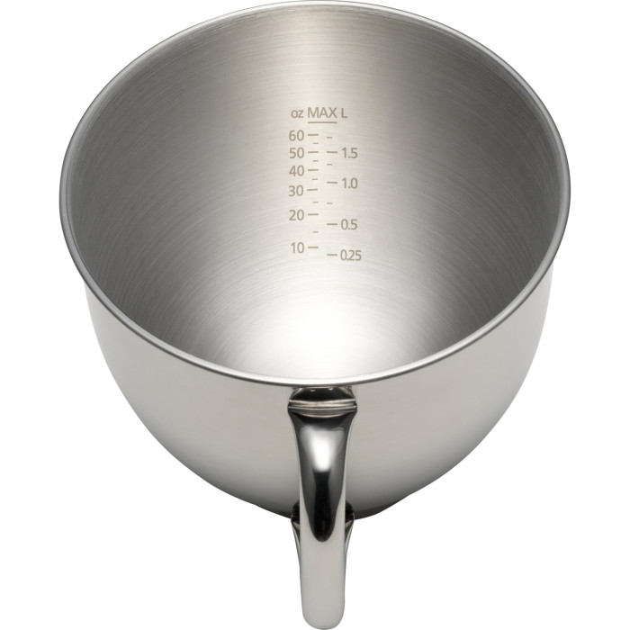 Зауженная книзу чаша способствует концентрации теста на ее дне, что улучшает захват теста и обеспечивает равномерное перемешивание.
