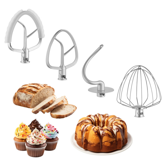 Высококачественные аксессуары.Аксессуары изготовлены из высококачественной нержавеющей стали и очень прочны для долгой службы насадок. Чаши для смешивания из нержавеющей стали представлены в двух размерах с максимальным объемом 6 л и 3,5 л с практичными крышками для хранения ингредиентов. В комплект также входит кофемолка с большим количеством насадок для приготовления различных закусок.