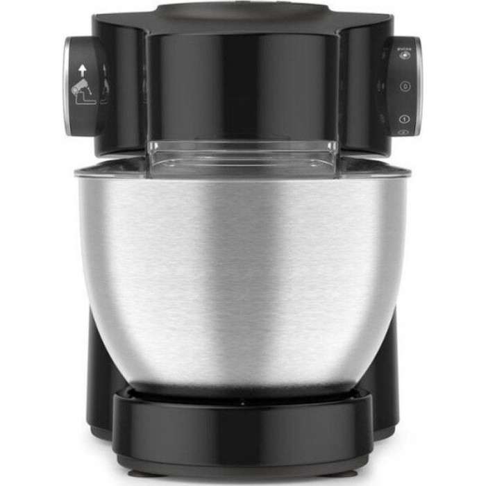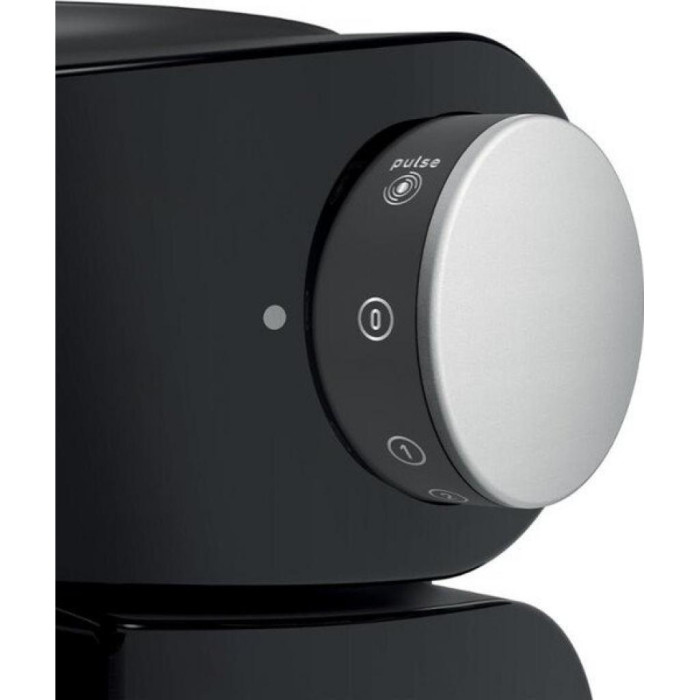Невероятно стильный и современный корпус модели имеет классический черный цвет, который превосходно дополняется стальными элементами на панеле управления и на рычаге открытия. Также стальной цвет имеет и чаша для приготовления, и насадки, которые представлены в большом количестве. Важно отметить компактность механизма, при помощи чего его можно размещать даже на небольшой кухне. Снизу устройства есть специальная защита от скольжения.