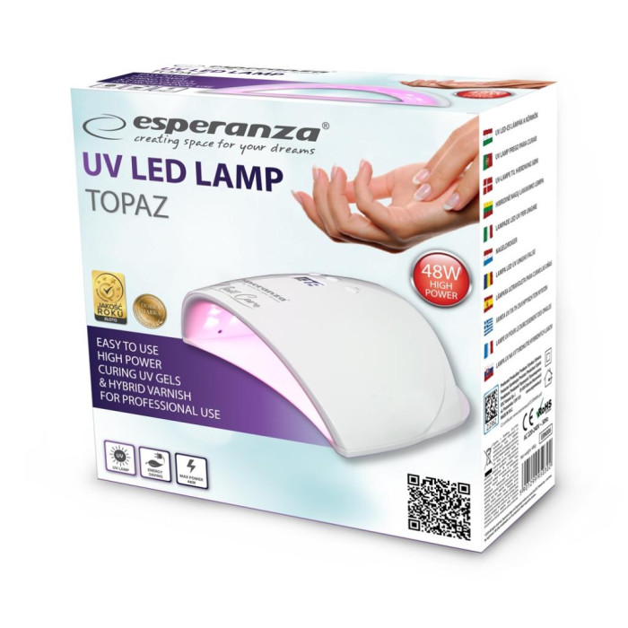 Профессиональная ультрафиолетовая лампа Esperanza EBN006 позволит забыть о частых посещениях салонов красоты и дорогих маникюрных процедурах. С ее помощью вы можете сделать это быстрее, дешевле и именно так, как вы хотите. Равномерно отверждает весь гибридный, акриловый, гелевый и другой УФ-лак.