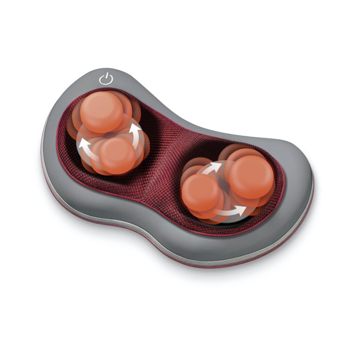 Универсальная массажная подушка шиацу Beurer. Эргономичный дизайн подушки, ее форма идеально прилегает к телу. Массаж плеч, шеи, спины и ног. Отдельным нажатием включаются дополнительные функции обогрева и подсветки. Четыре массажные головки вращаются попарно влево и вправо, автоматически меняя направление. Дарит приятный успокаивающий и расслабляющий массаж. Поверхность подушки имитирует кожу, она приятная и практичная в использовании. Массажная подушка немецкого качества – лучший подарок