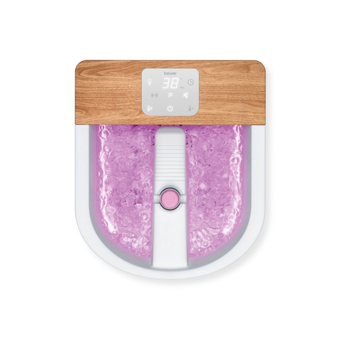 Массажная ванночка для ног с яркой разноцветной подсветкой воды. Оснащена вибрационным и пузырьковым массажем. Имеет восемь степеней нагрева воды. Обеспечивает расслабление и приятные ощущения вашим ножкам. В комплекте педикюрные насадки.