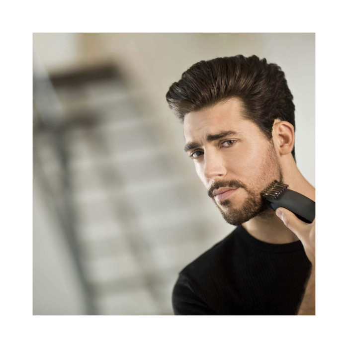 Триммер Remington MB4131 Beard Boss PRO – идеальное решение для всех мужчин, серьезно подходящих к созданию своего стиля. Триммер имеет лезвия с титановым покрытием, которые на 300% прочнее, чем обычные лезвия из нержавеющей стали и гарантируют быструю и равномерную стрижку. Технология OptiAngle (оптимальный угол наклона триммера для стрижки) гарантирует максимальный комфорт стрижки и превосходную управляемость триммера в любом направлении стрижки. В беспроводном режиме триммер гарантирует до 50 минут работы благодаря литиевому аккумулятору.