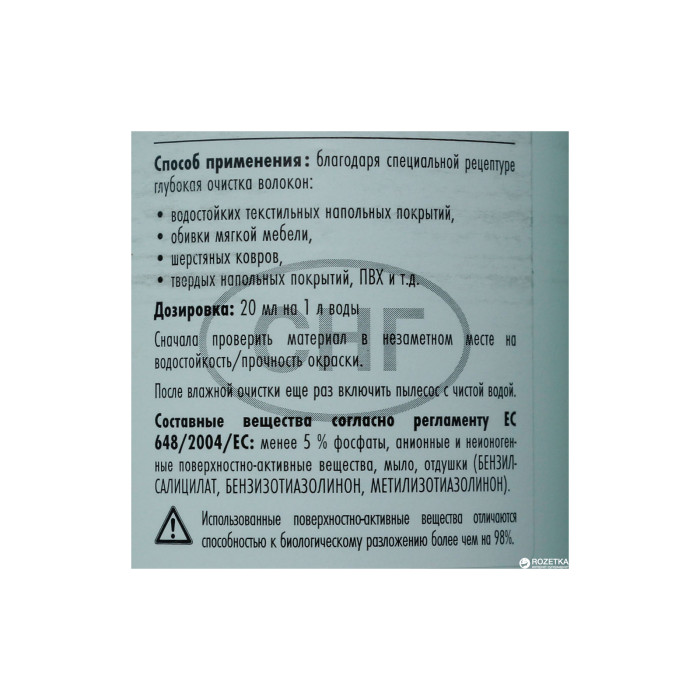 Использование моющего концентрата Thomas ProTex делает влажную уборку текстильных поверхностей еще более эффективной. После влажной чистки с этим средством ковровые покрытия и мягкая мебель будут выглядеть так же хорошо, как в первый день после покупки. Как и все моющие средства Thomas ProTex является гипоаллергенным и абсолютно безопасным.