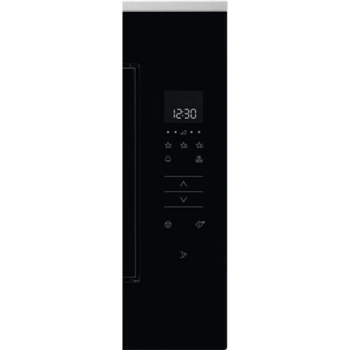 Electrolux KMFE264TEX — многофункциональная микроволновая печь черного цвета с поворотным стеклянным столом. Большая и наглядная панель управления с дисплеем, расположенная сбоку по всей высоте устройства. Дверца устройства открывается одним нажатием сенсорной кнопки, что очень удобно в процессе повседневной эксплуатации