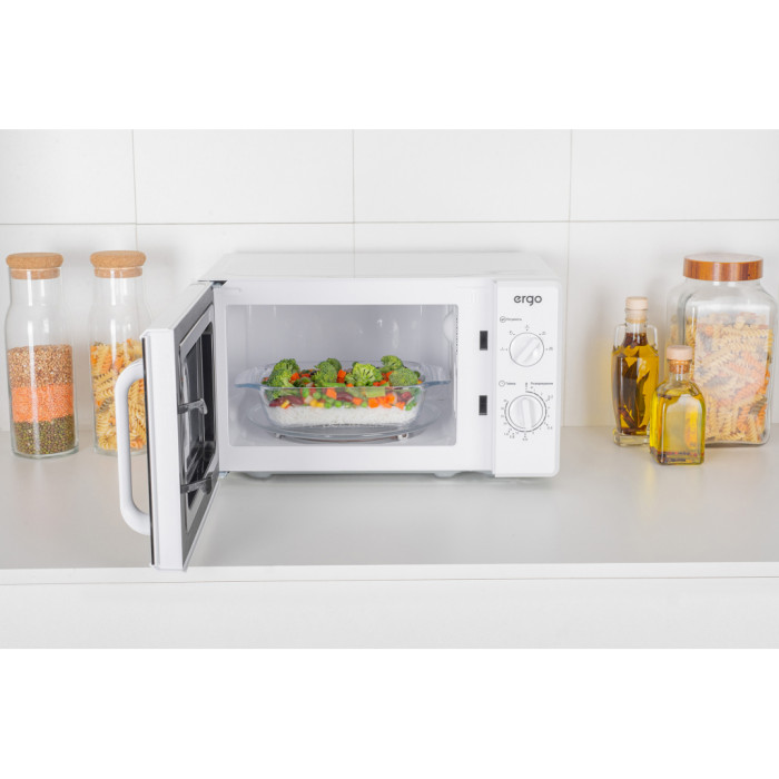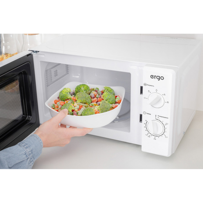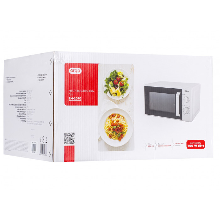 ERGO EM-2070 - это микроволновая печь белого цвета с практичным дизайном. Пригодится для быстрого приготовления блюд, и разогрева продуктов. Мощности в 700 Вт достаточно для точного контроля равномерного разогрева и разморозки в 5 режимах. Микроволновая печь достаточно вместительная, ведь имеет объем 20 литров. Быстро разморозить мясо или любые другие продукты поможет функция автоматического размораживания. Благодаря таймеру до 35 мин, Вы сможете оставить пищу разогреваться, выполняя другие дела. Поворотный стол обеспечивает равномерное разогрева пищи со всех сторон. Внутри печь покрыта эмалью, поэтому Вы сможете легко очистить ее от загрязнений. Микроволновая печь ERGO EM-2070 станет незаменимым помощником на Вашей кухне.